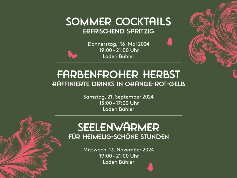 Für die Dauer des Workshops steht Ihnen Corina zur Seite und natürlich werden Sie auch die Gelegenheit haben, mit anderen Teilnehmern Ideen auszutauschen und sich gegenseitig zu inspirieren. Am Ende des Workshops werden Sie mit einem neuen Repertoire an Cocktailrezepten nach Hause gehen und Ihre Freunde und Familie mit köstlichen Drinks beeindrucken.