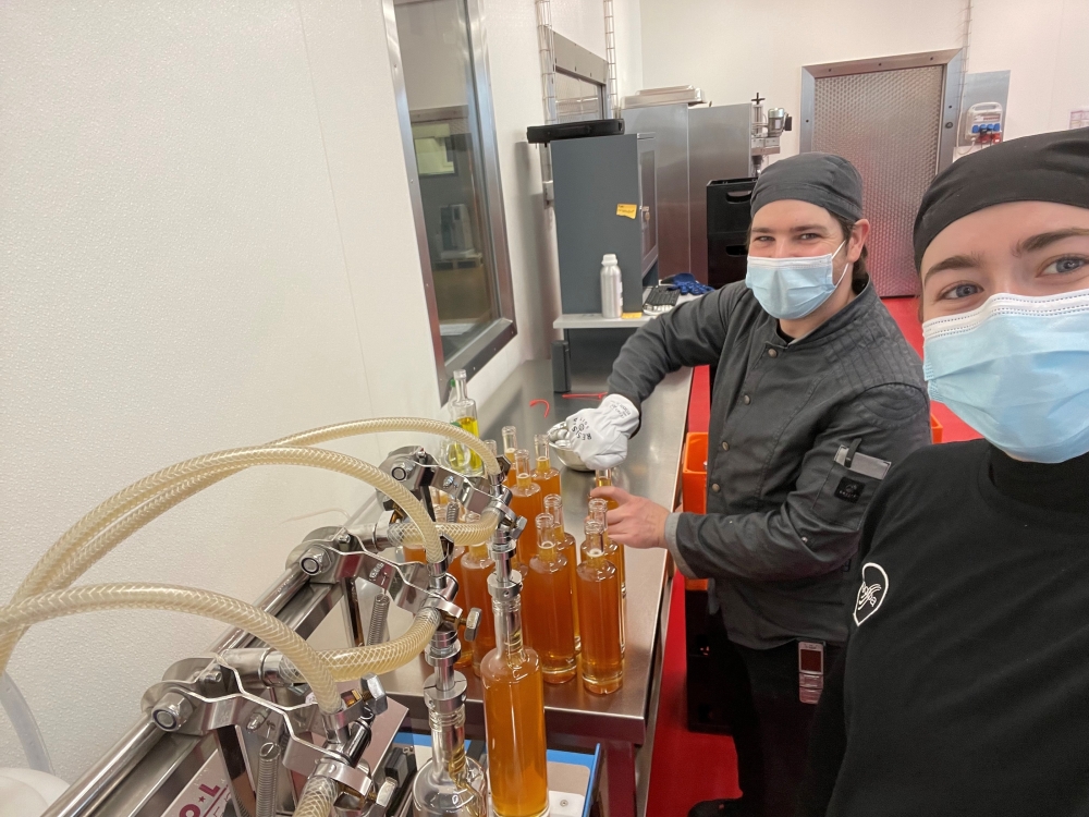 Gemäss Definition ist die Manufaktur ein Betrieb, in dem spezialisierte und hoch qualitative Produkte in Handarbeit hergestellt werden. Einige Wochen brauchte ich, bis ich mich daran gewöhnt habe, den ganzen Tag zu stehen, Zuckersäcke zu tragen, Kupferkessel zu heben, hunderte Flaschen zu verschrauben und tausende Nidelzeltli zu brechen. Doch das Manufaktur Team unterstütze mich dabei und zeigte mir geduldig und kompetent die verschiedenen Abläufe, Tipps und Tricks, um die alltägliche Handarbeit zu meistern. Für mich war die Arbeit in der Manufaktur mehr als nur herstellen, produzieren und reinigen. Für mich waren es auch die spannenden und lehrreichen Gespräche, während dem Flaschen abfüllen und dem Nidelzeltli brechen, welche die Zeit wie im Flug vergehen liessen. Doch nicht nur die Lebensmittel selbst waren Teil meines Praktikums, sondern auch die Reinigungen und das Hantieren mit Maschinen und Werkzeugen. Dies hat mir gezeigt, dass die Arbeiten in der Manufaktur nicht nur körperlich fordernd sind, sondern auch von jeder Person unheimlich viele Kompetenzen verlangen.