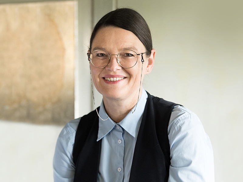 Die Künstlerin Vera Marke (*1972) hat Bildende Kunst studiert und setzt sich mit Konzepten der Malerei auseinander – vom Tafelbild, zum architektonischen Raum bis zum städtebaulichen Kontext. Ihre Arbeit wurde mit Werkbeiträgen und Stipendien honoriert und 2017 das Kunst am Bau Projekt «Triade» mit dem prestigeträchtigen Prix-Visarte ausgezeichnet.