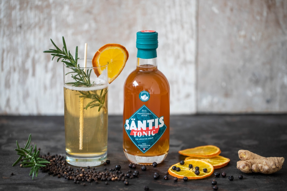 In der Küche des «Säntis - das Hotel» auf der idyllischen Schwägalp am Fusse des Säntismassivs, entstand die Idee für das Säntis Tonic. Ein Tonic Sirup zum selber mischen soll es sein - eine echte Neuheit auf dem Schweizer Tonic Markt.
