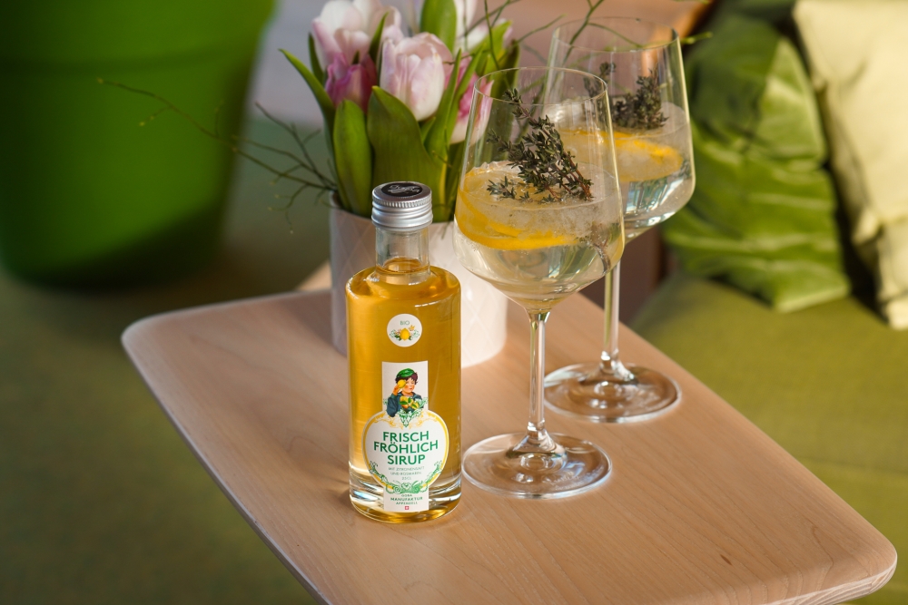 - Alle Zutaten in den Gläsern vermengen, Eis dazu und anrichten mit Thymian und Zitrone.