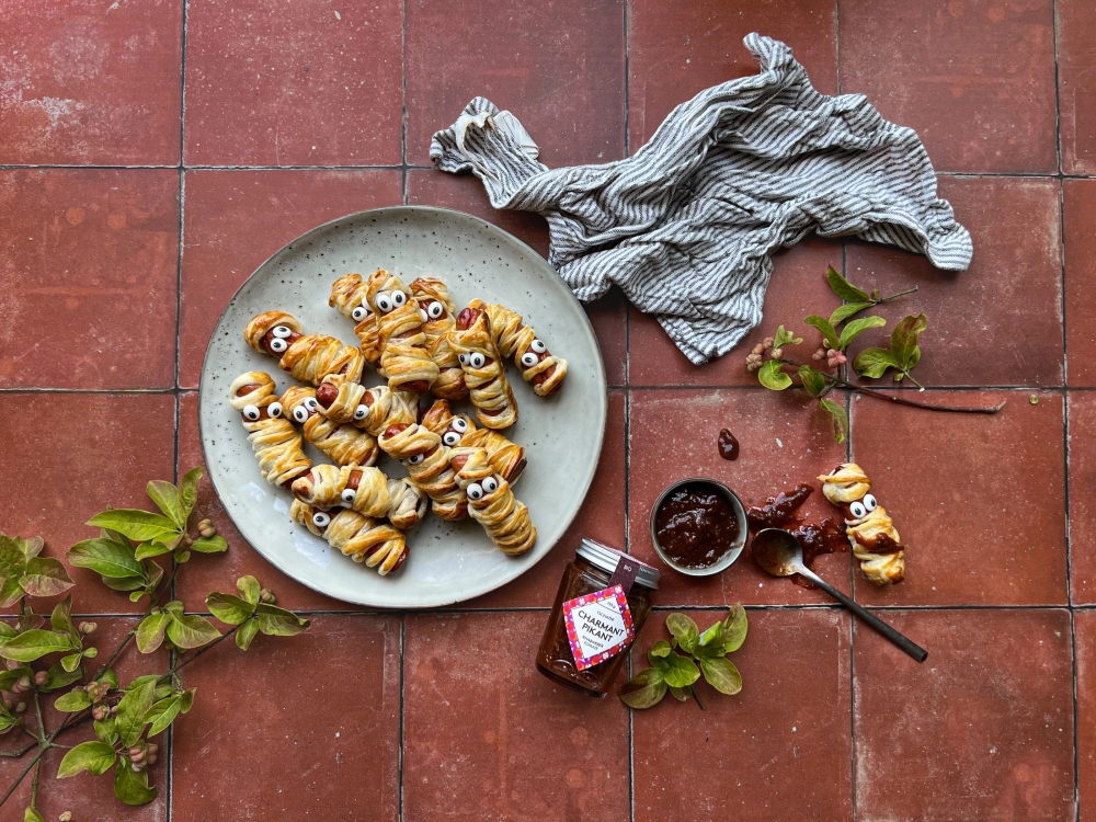 Gespenstisches Fingerfood für eine gruselige Nacht. Die würzigen Mumien mit Wienerli und unserem Charmant Pikant sind das i-Tüpfelchen auf dem Buffet und erfreuen Gross und Klein.