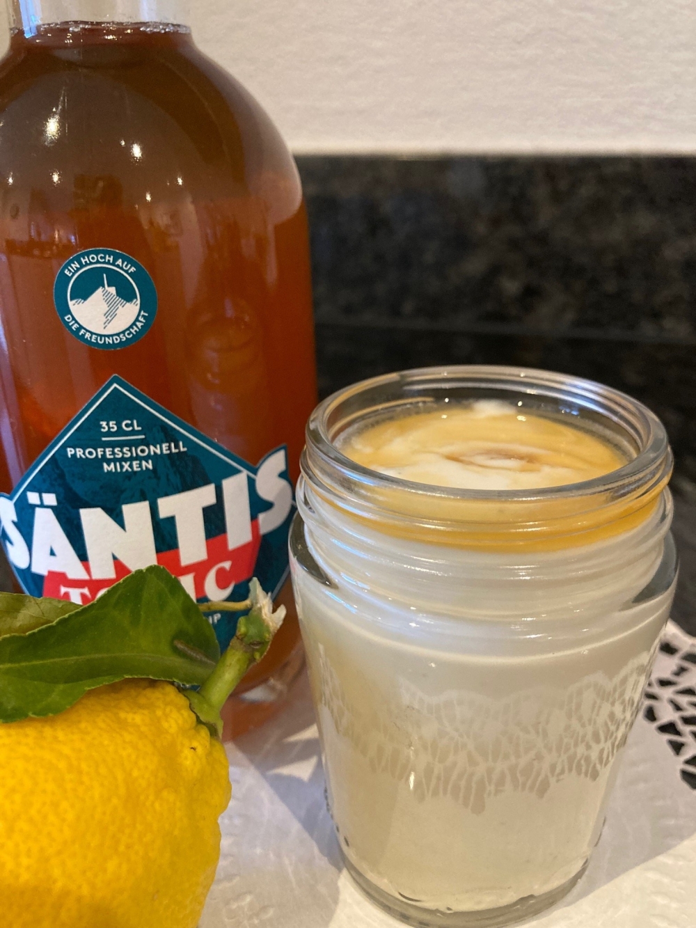 - Säntis Tonic dazugeben und unter die Masse melieren.