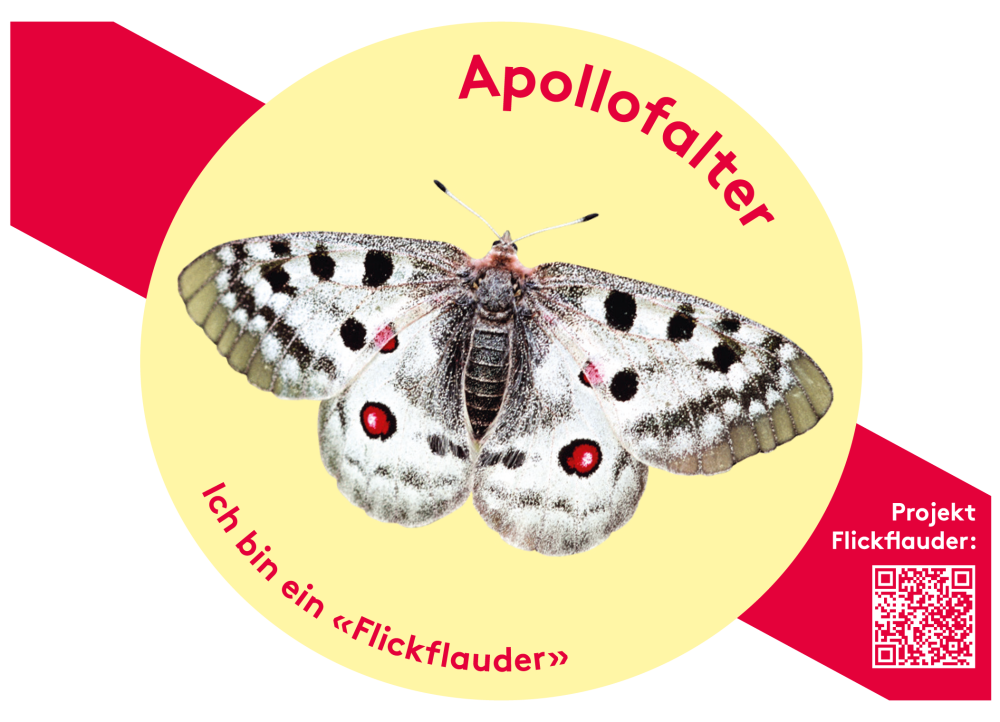 Einer dieser Pavillons findet sich in Bergün und steht für den gefährdeten Apollofalter (Parnassius apollo). Und genau dieser Flickflauder ziert nun die Innenseite der Etikette unserer Flauder Original Flasche!